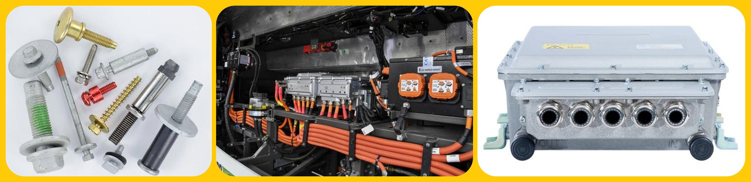 Korkeajännitteisten johtosarjayhteyskiinnikkeet: Korkeajännitteisten johtosarjat ovat kriittisiä EVS: n voimansiirron kannalta. Niiden yhteyskiinnikkeiden on varmistettava valjaiden yhteyksien luotettavuus ja turvallisuus, estäen oikosulku tai huono kosketus löysämisen vuoksi. Luotettava lukitussuorituskyky ja hyvä johtavuus (joillekin maadoitusyhteyksille) ovat avainasemassa.